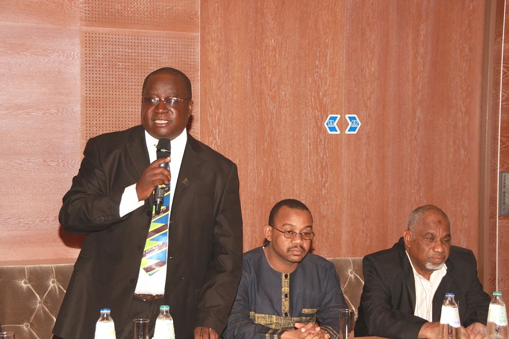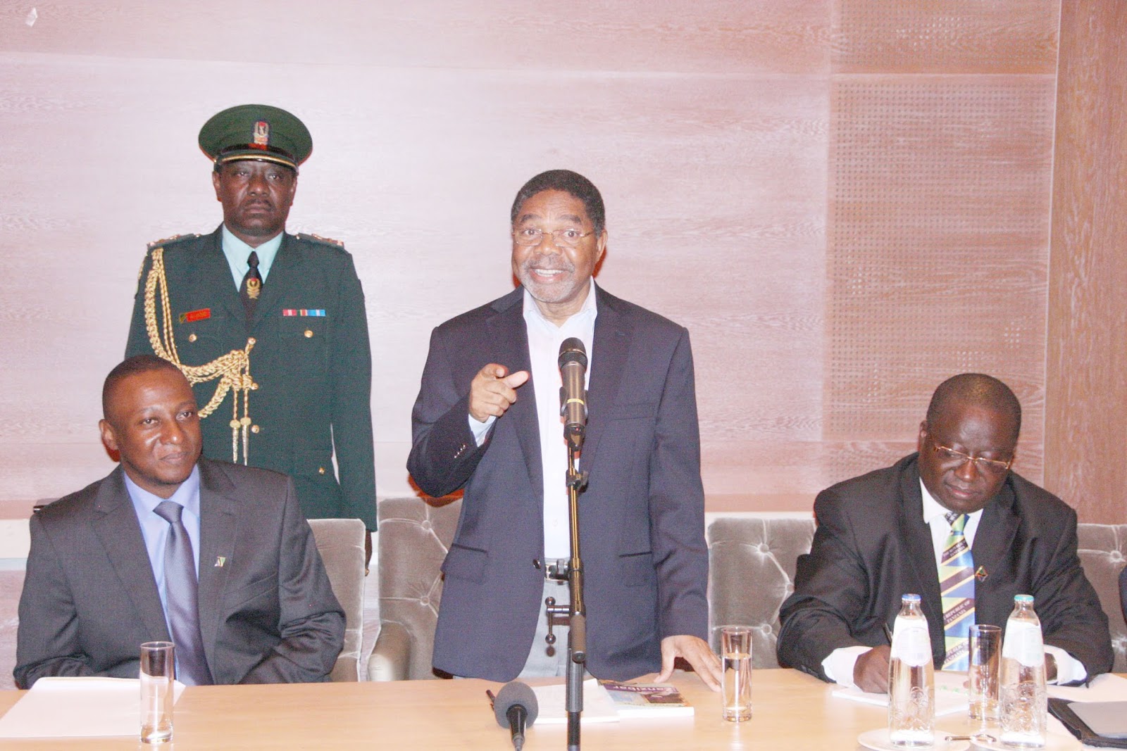 Balozi wa Tanzania Nchini Uholanzi Dr. Diodorus B.Kamala,akimkaribisha Rais wa zanzibar na Mwenyekiti wa Baraza la Mapinduzi Dk.Ali Mohamed Shein,kuzungumza na Watanzania wanoishi Nchini Uholanzi,akiwa katika ziara nchini humo katika ukumbi wa Hilton Hotel,(kulia) Waziri wa Mawasiliano Miundombinu Rashid Seif Suleiman,na katikati Naibu Waziri wa Mambo ya Nje na Ushirikiano wa Kimataifa Mahadhi Juma Maalim