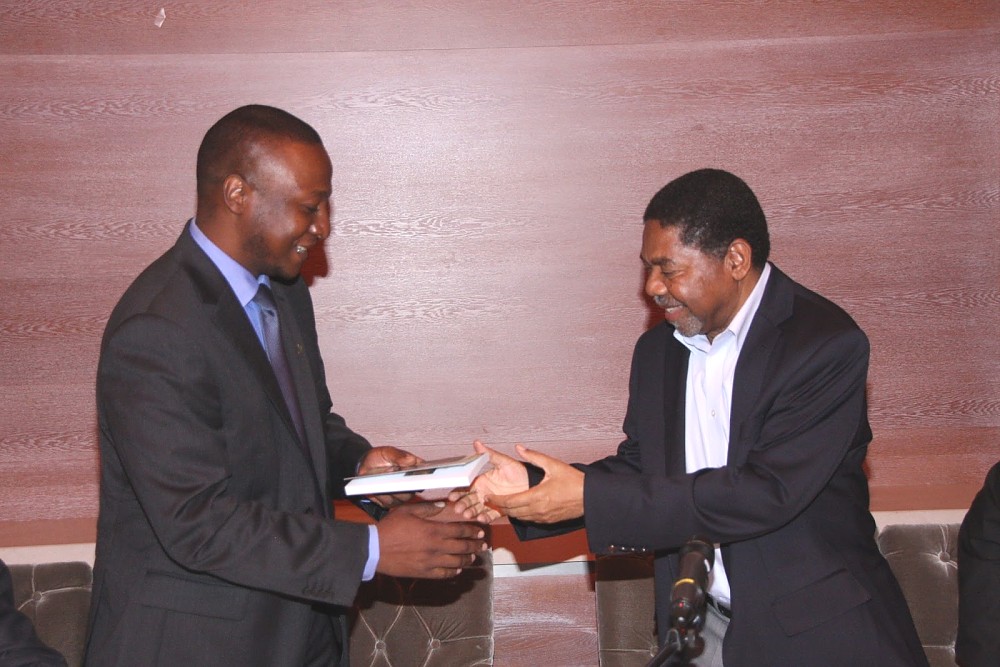 Rais wa Zanzibar na Mwenyekiti wa Baraza la Mapinduzi Dk.Ali Mohamed Shein,alipokuwa akipokea risala ya Watanzaania wanaoishi Nje ya Nchi,kutoka kwa Mwenyekiti wa Umoja huo Bulemo Francis Kweba, alipoku akizungumza nao katika Hoteli ya Hilton Mjini The Hague,