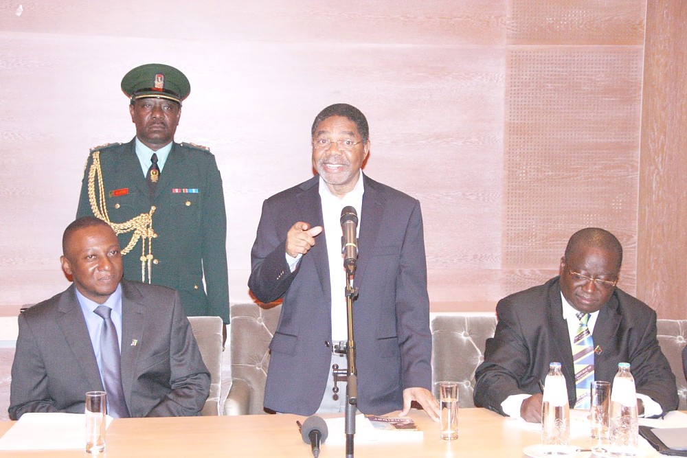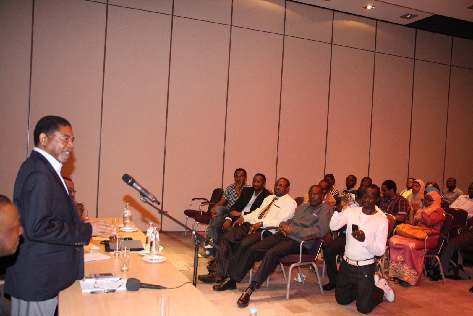 Rais wa zanzibar na Mwenyekiti wa Baraza la Mapinduzi Dk.Ali Mohamed Shein,alipokuwa akizungumza na Watanzania wanaoishi Nchini Uholanzi,akiwa katika ziara nchini humo akiwa na ujumbe aliofuatana nao katika ukumbi wa Hilton Hotel Mjini The Hague,(kulia) Balozi wa Tanzania Nchini Uholanzi Dr. Diodorus B.Kamala,na Mwenyekiti wa Watanzania wanaoishi Uholanzi Bulemo Francis Kweba